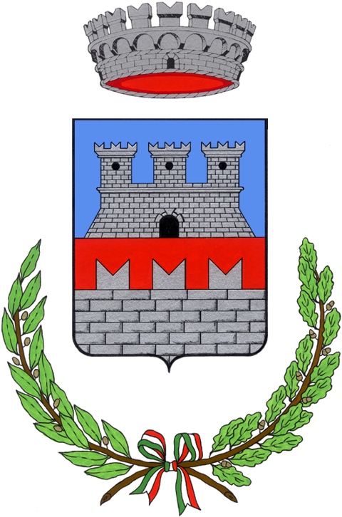 Casella Coat of Arms (Liguria Region - Italy). Image, Field Partition, Charges, Tinctures and Gonfalon. Symbols: Castle, Tower