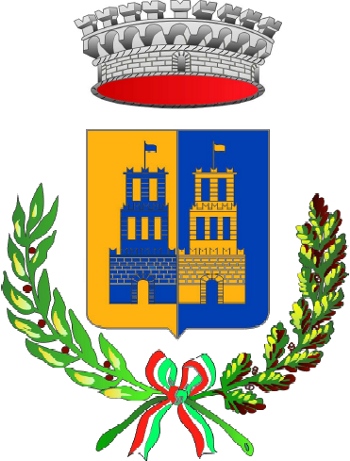 Zoagli Coat of Arms (Liguria Region - Italy). Image, Field Partition, Charges, Tinctures and Gonfalon. Symbols: Castle, Tower