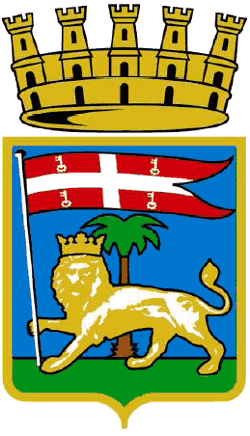 Viterbo Coat of Arms (Lazio Region - Italy). Image, Field Partition, Charges, Tinctures and Gonfalon. Symbols: Lion, Palm-Tree
